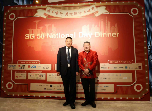On August 11, 2023, Mr. Dong Maojin (first from the left) attended the Singapore National Day Celebration Dinner hosted by the China-Singapore Business Council in Shanghai and posed for a photo with the Ambassador of Singapore to China, Chen Haiquan (first from the right).
