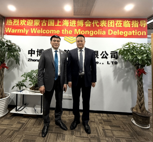 ▲ On November 7, 2024, Mr. Dong Maojin (far right) welcomed the Deputy Prime Minister of Mongolia, Saym Amursaihan (S. AmarsaiKhan, on the left, participated in a company inspection during the Shanghai World Expo.