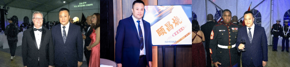 ▲In November 2023, Mr. Dong Maojin attended the 248th anniversary celebration of the United States Marine Corps and posed for a photo with Scott Walker, the U.S. Consul General in Shanghai (left image), and the Marine Corps Captain (right image).