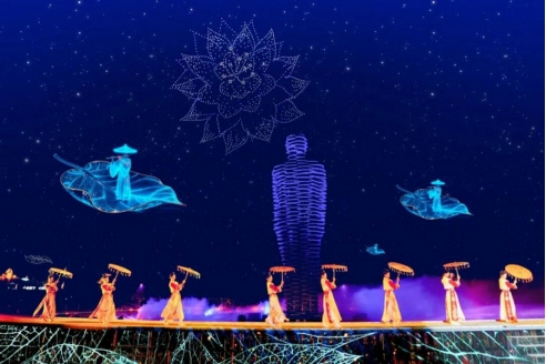 Light show featuring 2,000 drones is presented at Nianhuawan Bay. [Photo provided to chinadaily.com.cn]